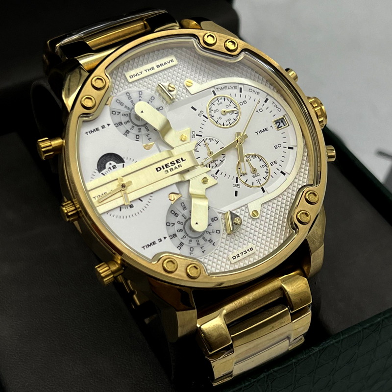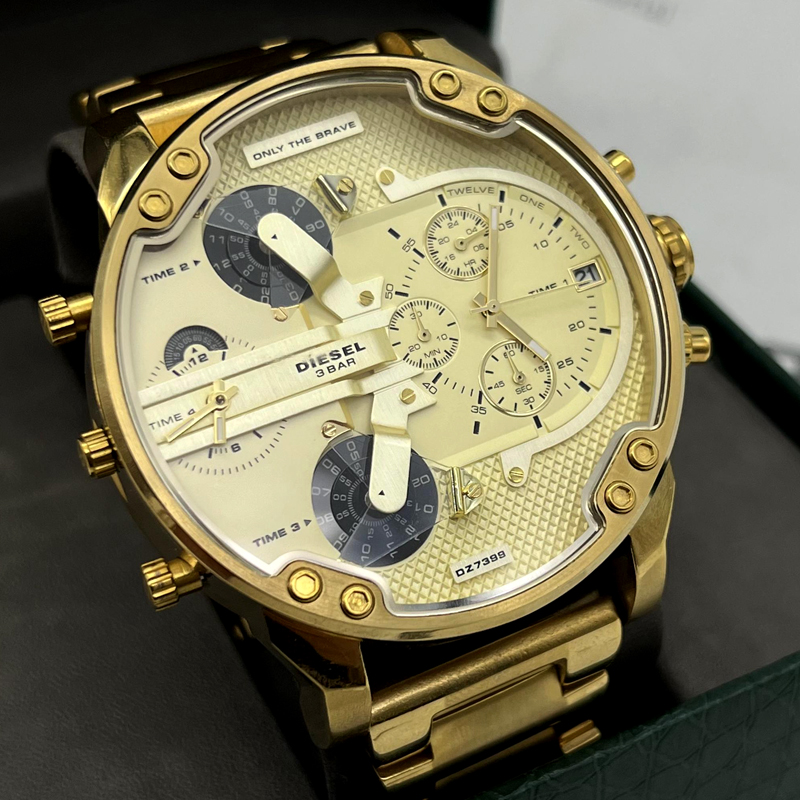 ساعت مردانه دیزل مدل هفت موتوره طلایی صفحه طلایی