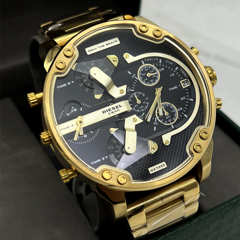 ساعت مردانه دیزل مدل هفت موتوره طلایی فریم مشکی