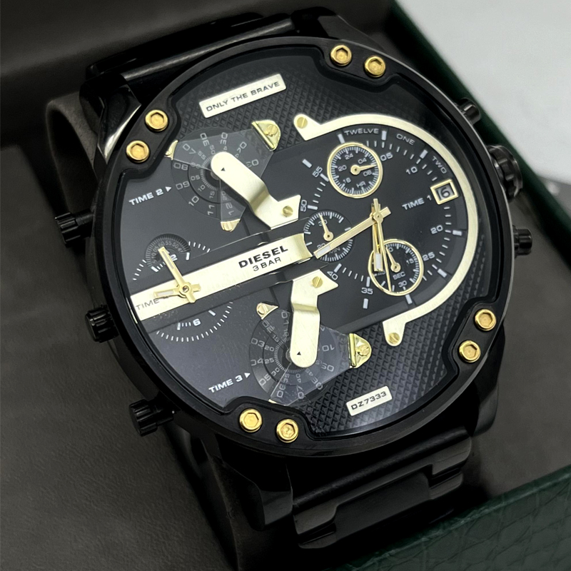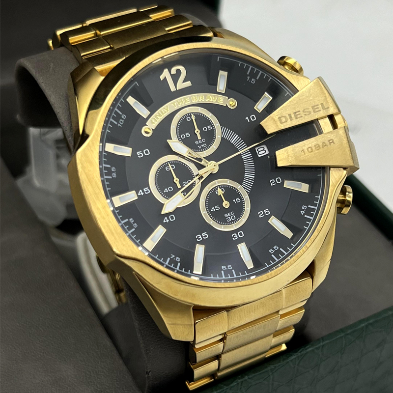ساعت مردانه دیزل مدل هفت موتوره طلایی صفحه مشکی طلایی