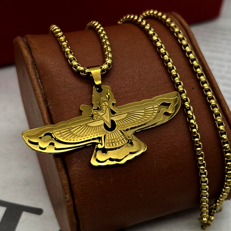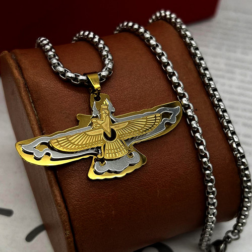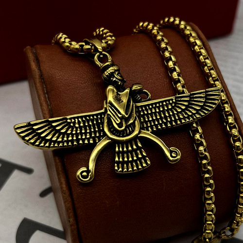 گردنبند فروهر طلایی استیل