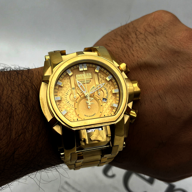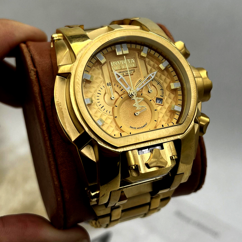 برای بررسی ساعت اینویکتا زئوس اصل با صفحه طلایی ابتدا باید توجه شما رو به این جلب کنم، که این ساعت جز محبوب ترین و خاص ترین ساعت مچی مردانه برای کسانی که دنبال ساعت سنگین هستند میباشند. این ساعت زئوس اصل یا در اصطلاح ساعت گودزیلا اصل دارای موتور قدرتمند میوتا ژاپن که تمامی موتورها فعال و قاب و بند ساخته شده از استیل آبکاری شده رنگ ثابت و ضد حساسیت میباشد. این ساعت با صفحه بسیار بزرگ و وزن معادل 340 گرم جز سنگین ترین ساعت های جهان میباشد. از این ساعت اینوکتا اصل ضد آب در حد پاشش آب روی دست میباشد و حتی ساعت کوچک زیر ساعت نیز فعال میباشد.