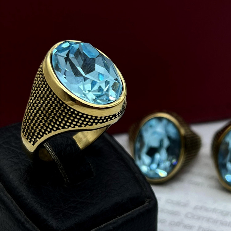 انگشتر مردانه نگین دار با رنگ نگین آبی طرح توپاز که یکی از خوش رنگ ترین و خوش رکاب ترین انگشتر طرح نگین مردانه میباشد. این انگشتر مردانه نگین آبی ساخته شده از استیل عیار 316L با بالاترین کیفیت آبکاری رنگ ثابت و ضد حساسیت میباشد و در سایزبندی 8 9 10 11 12 موجود و قابل سفارش میباشد.