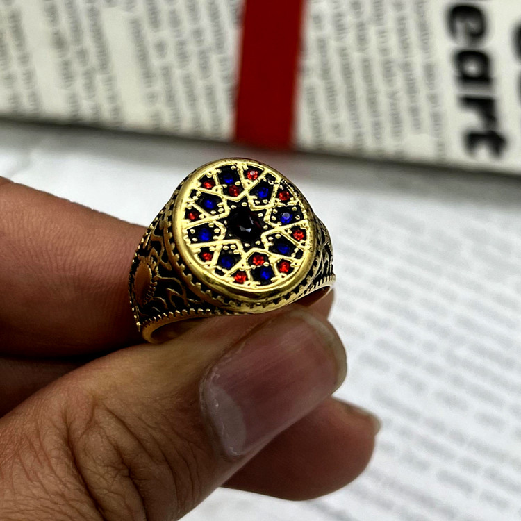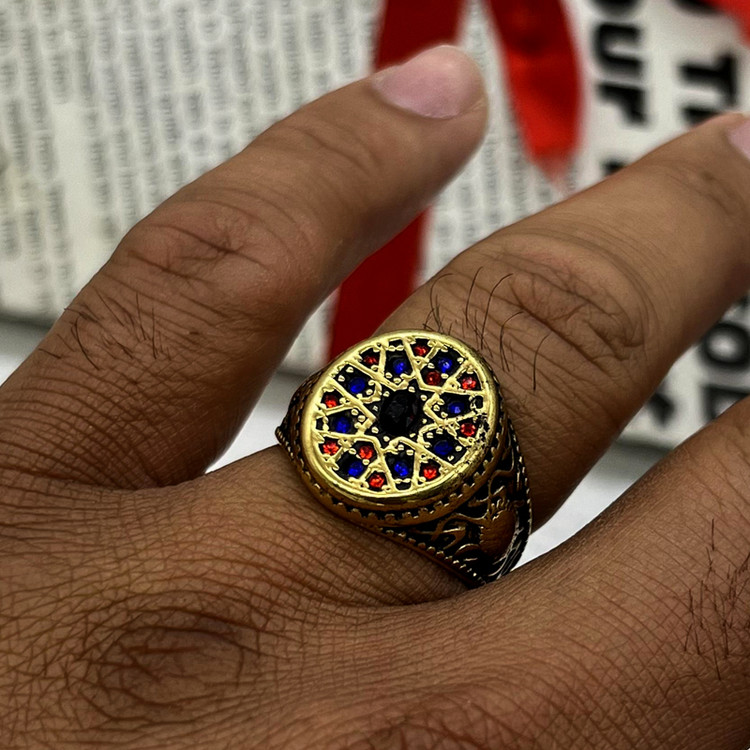انگشتر فوق العاده شیک و زیبا با ترکیب نگین قرمز و آبی و یک رکاب بسیار خاص که مناسب آقایان شیک پوش میباشد. این انگشتر نگین دار طرح جواهر مردانه ساخته شده از استیل عیار 316 با بالاترین کیفیت آبکاری رنگ ثابت و ضد حساسیت میباشد. این انگشتر نگین جواهری مردانه با نگین هایی با رنگ آبی و قرمز که از نوع نگین های جواهری ارزشمند میباشد و زیبایی و درخشندگی این انگشتر را دو چندان نموده است.