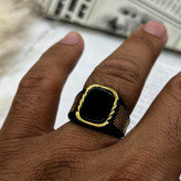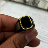 انگشتر مردانه نگین دار-دو رنگ مشکی طلایی