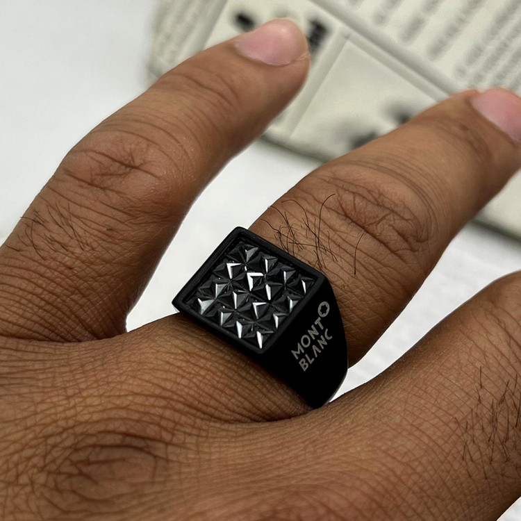 انگشتر مونت بلان-montblanc تمام مشکی با نگین شبکه ای بسیار خاص و زیبا و با نوشته برند روی رکاب انگشتر جز مخبوب ترین انگشتر تمام مشکی میباشد. این انگشتر مون بلان مشکی ساخته شده از استیل عیار 316L رنگ ثابت و ضد حساسیت و دارای سایزبندی 9 10 11 12 موجود و قابل سفارش میباشد. اگر دنبال خرید انگشتر مونت بلان هستی این انگشتر رو از دست نده.