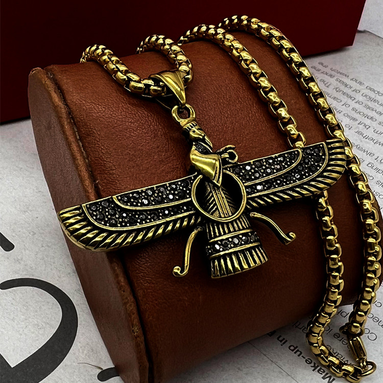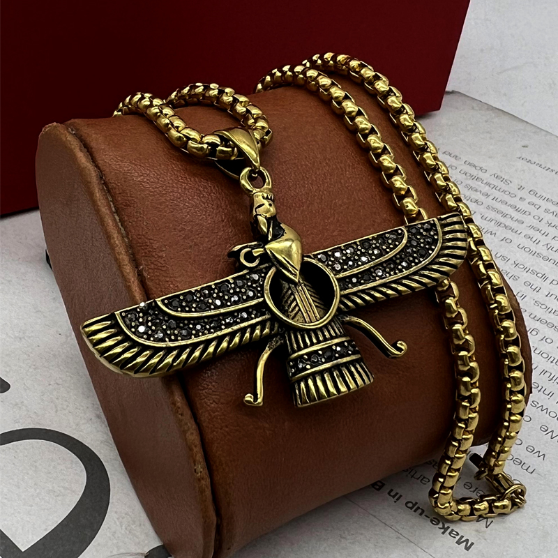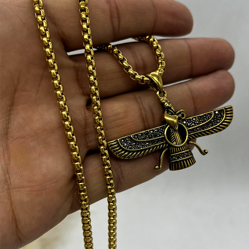 گردنبند فروهر مردانه طلایی بسیار زیبا و نفیس و اصیل که جز نمادهای اصیل ایرانی و بسیار پر طرفدار میباشد. این گردنبند فروهر طلایی ساخته شده از استیل عیار 316L با بالاترین کیفیت آبکاری، رنگ ثابت و ضد حساسیت و سیاه قلم کاری شده و نگین های روی پلاک اتمی و بدون ریزش میباشد. این گردنبند فروهر استیل دو رو بوده و همانطور که در عکس مشاهده میکنید از هر سمت پلاک قابل استفاده میباشد. این گردنبند فروهر خاص دارای زنجیر ویتالی 60 سانت که قابل کوتاه شدن میباشد و طراحی آن به گونه ای بوده که قابل استفاده آقایان و بانوان میباشد.اگر دنبال خرید یک هدیه نفیس و اصیل هستی، پیشنهاد میکنم خرید گردنبند فروهر مردانه را از دست ندی و از داشتنش لذت ببری.