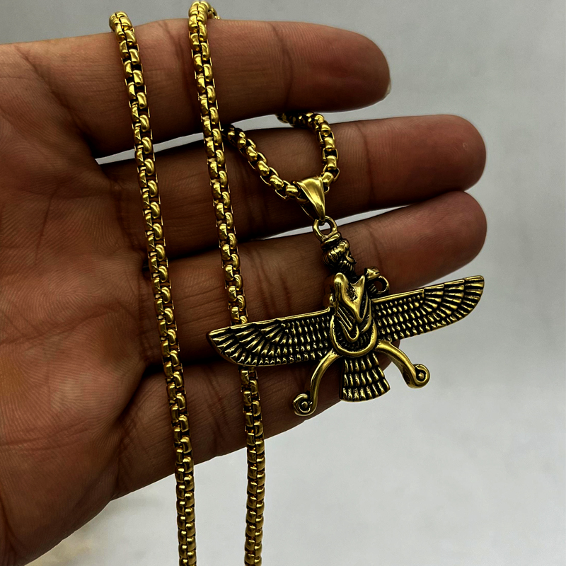گردنبند فروهر مردانه-استیل آبکاری شده و اصیل