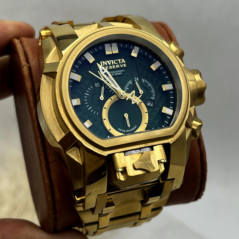 ساعت اینویکتا زئوس خودش به تنهایی یکی از خاص ترین و سنگین ترین ساعت های جهان هستش، مخصوصا وقتی صفحه ساعت سبز رنگ پولداری هم باشه که دیگه زیباییش و جذابیتش دو برابر میشه. ساعت اینویکتا اصل با رنگ صفحه سبز دارای موتور قدرتمند میوتا ژاپن که تمامی 6 موتور آن فعال و دارای نمایشگر تقویم، نمایشگر قبل ظهر و بعد از ظهر و کرنوگراف میباشد و همچنین ساعت کوچک زیر ساعت نیز فعال میباشد. برای بررسی ساعت اینویکتا زئوس باید به قاب و بند استیل عیار 316L با بالاترین کیفیت آبکاری، رنگ ثابت و ضد حساسیت و شیشه ضد خش و ضد آب در حد دست شستن میباشد. قطر صفحه این ساعت گودزیلا اصل 56 میلی متر و وزن آن 340 گرم میباشد. اگر دنبال خرید ساعت مردانه برای استایل جسورانه خودت هستی پیشنهاد میکنم خرید ساعت اینویکتا زئوس با رنگ صفحه سبز رو از دست ندی و مجموعه تیپ لند هم بهترین کیفیت و بهترین قیمت با ضمانت اصالت کالا و یکسال گارانتی رو برات هدیه میده.