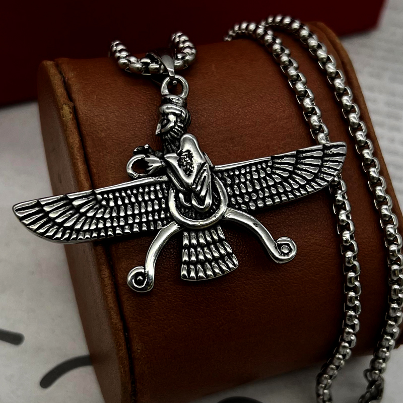گردنبند فروهر نماد اصالت و فرهنگ اصیل ایران و ایرانی که جز محبوب ترین و زیباترین نماد بین ایرانیان بوده و هست. این گردنبند فروهر دو رو استیل ساخته شده از استیل عیار 316L رنگ ثابت و ضد حساسیت که روی پلاک سیاه قلم کاری شده و پلاک دو رو بوده و هر دو رو قابل استفاده میباشد. این گردنبند فروهر ساده دارای زنجیر ویتالی 60 سانت که قابل کوتاه شدن میباشد. برای دریافت قیمت و خرید کردنبند فروهر با مجموعه تیپ لند در ارتباط باشید.
