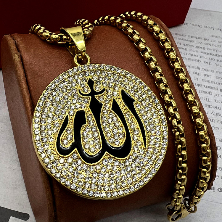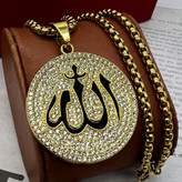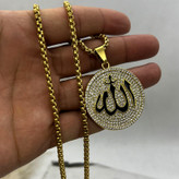 پلاک زنجیر الله نگین دار بسیار خاص و زیبا و بسیار پر طرفدار مزین به نام مبارک الله که همیشه و همیشه پر طرفدار و محبوب بوده است. این گردنبند الله مردانه ساخته شده از استیل عیار 316L با بالاترین کیفیت آبکاری رنگ ثابت و ضد حساسیت میباشد. روی این پلاک الله طلایی نگین کاری اتمی شده، بدون ریزش که درخشندگی این گردنبند را دو چندان نموده است. این گردنبند الله فول نگین دارای زنجیر ویتالی 60 سانت که قابل کوتاه شدن میباشد و قابل استفاده آقایان و بانوان میباشد.
