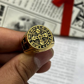 انگشتر صلیب خاص مردانه بسیار زیبا با ترکیب رنگ طلایی و سیاه قلم روی انگشتر و نوشته هایی با فونت لاتین این انگشتر طرح صلیب را محبوب و پرطرفدار کرده است. این انگشتر صلیب طلایی ساخته شده از استیل عیار 316L با بالاترین کیفیت آبکاری رنگ ثابت و ضد حساسیت و دارای سایزبندی 9 10 11 موجود و قابل سفارش میباشد.