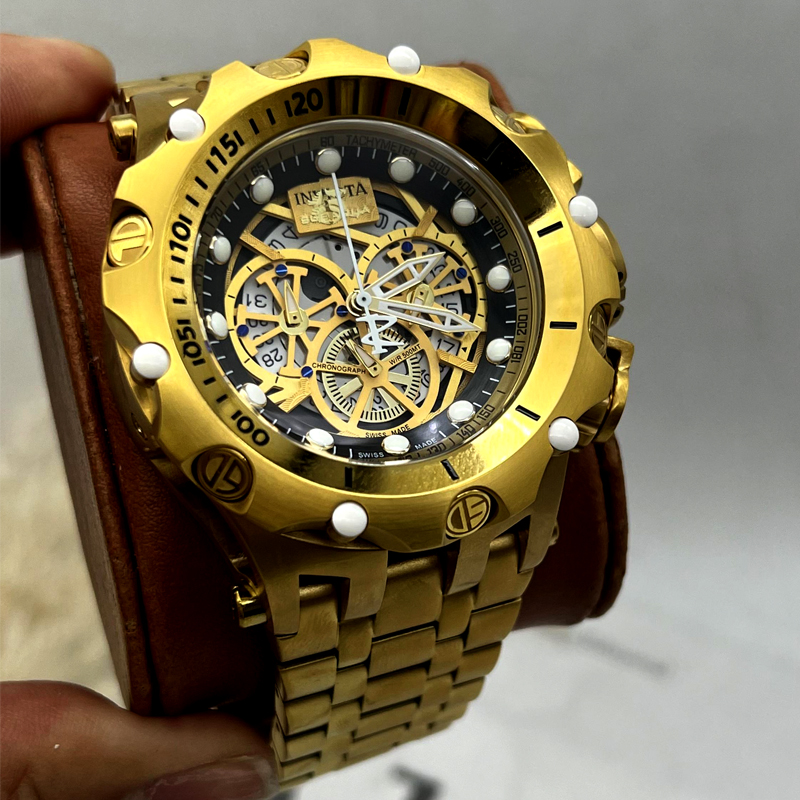 ساعت مردانه اینویکتا مدل هیبرید فوق العاده جذاب و خوش دست که جز محبوب ترین ساعت های برند اینویکتا-INVICTA میباشد. این ساعت هیبرید اصل دارای موتور قدرتمند ژاپنی سه موتوره که تمامی موتورها فعال و دارای نمایشگر تقویم، قبل ظهر و بعد از ظهر و کرنوگراف میباشد. مشخصات ساعت اینویکتا هیبرید شامل قاب و بند استیل آبکاری شده رنگ ثابت و ضد حساسیت و شیشه ضد خش و ضد آب در حد شستشو دست میباشد. قطر این ساعت اینویکتا هیبرید آمریکایی یا به اصطلاح تانک آمریکایی 56 میلی متر و وزن آن 320 گرم میباشد. این ساعت هیبرید اصل اینویکتا را با ضمانت اصالت کالا و بالاترین کیفیت و قیمت ساعت اینویکتا هیبرید را از تیپ لند-TIPLAND بخواهید و با یکسال گارانتی معتبر تهیه فرمایید.