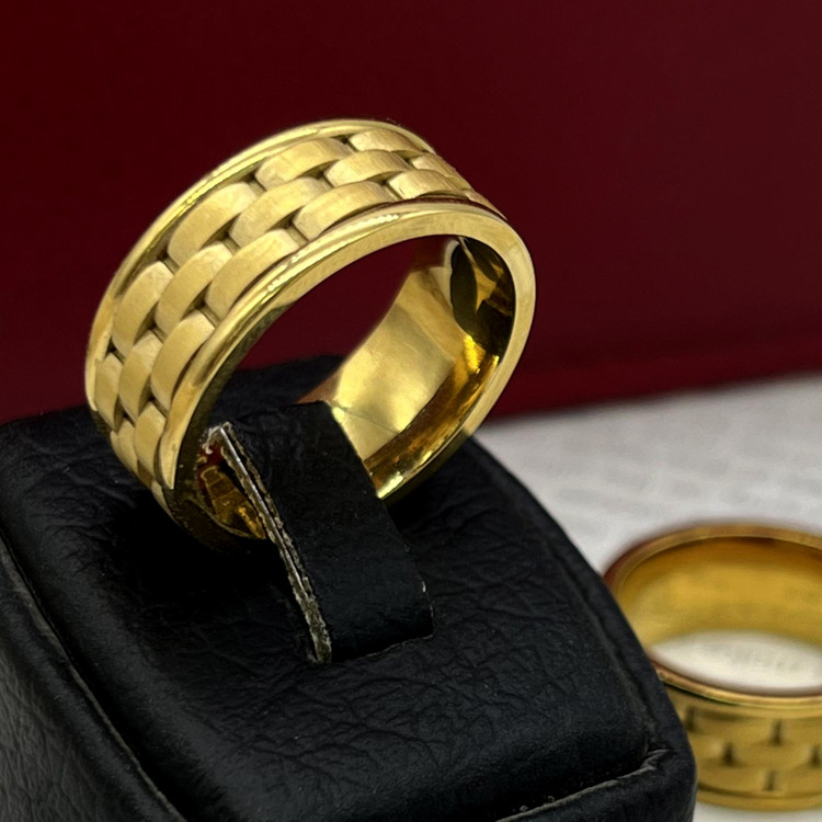 حلقه طلایی مردانه بسیار خاص و زیبا و مجلسی یکی از پرطرفدارترین انگشتر حلقه طلایی میباشد. این حلقه مردانه طلایی ساخته شده از استیل عیار 316L با بالاترین کیفیت آبکاری رنگ ثابت و ضد حساسیت و دارای سایزبندی 9 10 11 موجود و قابل سفارش میباشد.