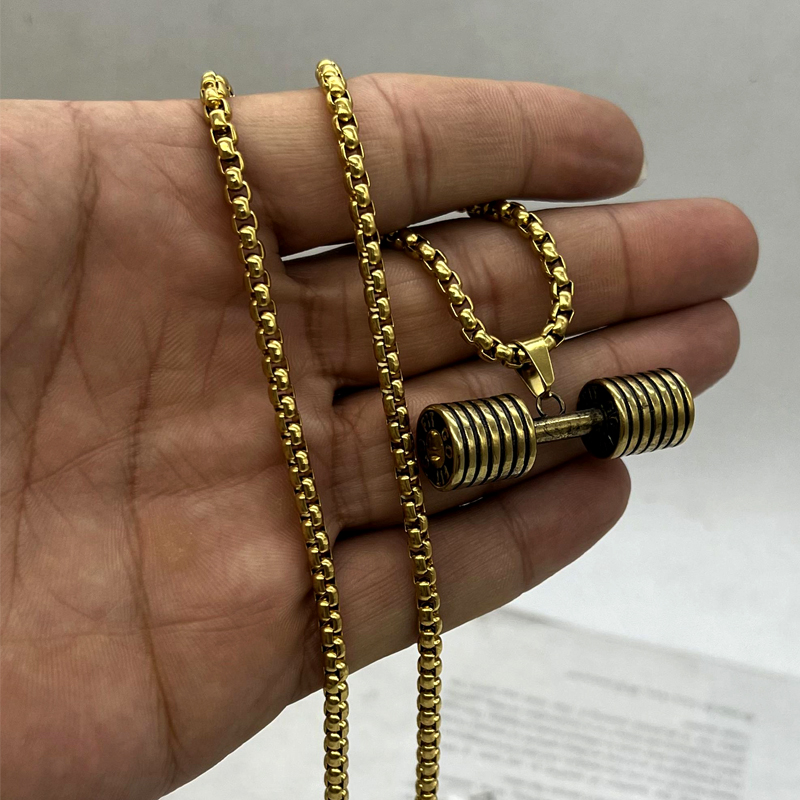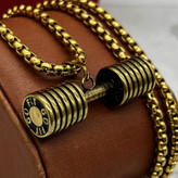 گردنبند دمبل بدنسازی طلایی بسیار زیبا و خوش استایل یکی از بهترین گردنبندها برای علاقمندان به بدنسازی و پرورش اندام میباشد. این پلاک زنجیر دمبل ساخته شده از استیل آبکاری 24 میکرون، رنگ ثابت و ضد حساسیت و دارای زنجیر ویتالی 60 سانت که قابل کوتاه شدن میباشد. این گردنبند بدنسازی مردانه با ظاهری خاص و زیبا تکمیل کننده استایل ورزشی شما در هر باشگاهی میباشد. طراحی و ساخت این گردنبند به گونه ای بوده که قابل استفاده آقایان و بانوان میباشد و میتوان این گردنبند را، گردنبند دمبل زنانه و یا گردنبند دمبل مردانه نامید. اگر ورزشکاری و دنبال خرید گردنبند ورزشی هستی، پیشنهاد میکنم خرید گردنبند دمبل بدنسازی رو از دست نده.