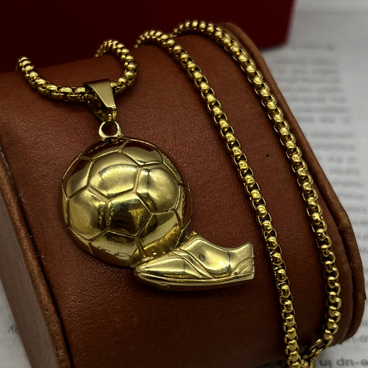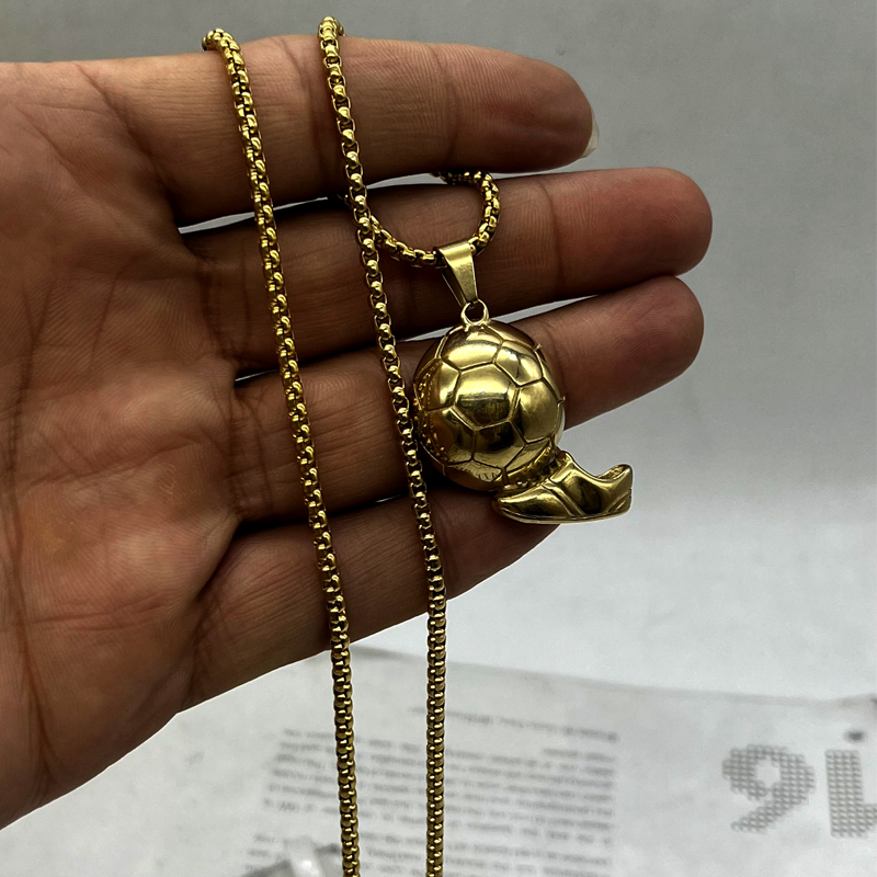 گردنبند توپ فوتبال یک دست طلایی فوق العاده شیک و زیبا مخصوص آقایان و خانم های فوتبالیست و علاقمند به رشته ورزشی فوتبال میباشد. این پلاک زنجیر فوتبال زیبا ساخته شده از استیل عیار 316L بالاترین کیفیت آبکاری رنگ ثابت و ضد حساسیت میباشد و دارای زنجیر ویتالی 60 سانت که قابل کوتاه شدن میباشد. این گردنبند طرح فوتبال به گونه ای ساخته شده که مناسب آقایان و بانوان میباشد. اگر به فوتبال علاقمندی و دنبال تکمیل کردن استایل فوتبالی خودت هستی، پیشنهاد میکنم خرید گردنبند توپ فوتبال رو از دست ندی.