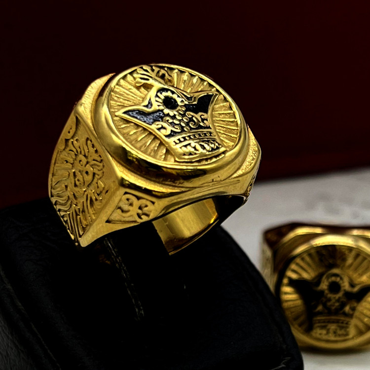 انگشتر تاج مردانه یک دست طلایی فوق العاده زیبا و پر طرفدار که با سیاه قلمی که روی رکاب استفاده شده زیبایی این انگشتر طرح تاج را دو چندان نموده است. این انگشتر تاج مردانه استیل ساخته شده از استیل عیار 316L با بالاترین کیفیت آبکاری رنگ ثابت و ضد حساسیت کاملا مشابه طلا و در سایزبندی 9 10 11 12 موجود و قابل سفارش میباشد. اگر دنبال خرید انگشتر مشابه طلا هستی، پیشنهاد میکنم خرید انگشتر تاج مردانه رو از دست ندی.