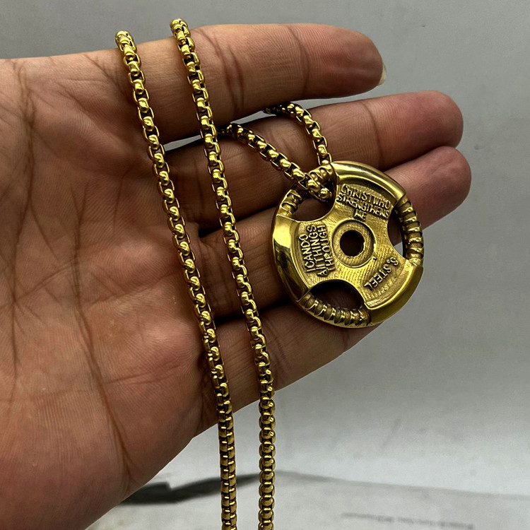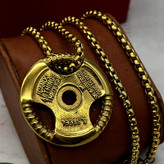 گردنبند وزنه بدنسازی یک دست طلایی شیک و زیبا مخصوص آقایان و خانم های ورزشکار و علاقمند به ورزش بدنسازی که بسیار پر طرفدار میباشد. این گردنبند بذتسازی طلایی ساخته شده از استیل عیار 316L با بالاترین کیفیت آبکاری رنگ ثابت و ضد حساسیت و دارای زنجیر ویتالی 60 سانت که قابل کوتاه شدن میباشد.اکر ورزشکاری و دنبال تکمیل کردن استایل ورزشیت هستی پیشنهاد میکنم خرید گردنبند وزنه بدنسازی رو از دست ندی.