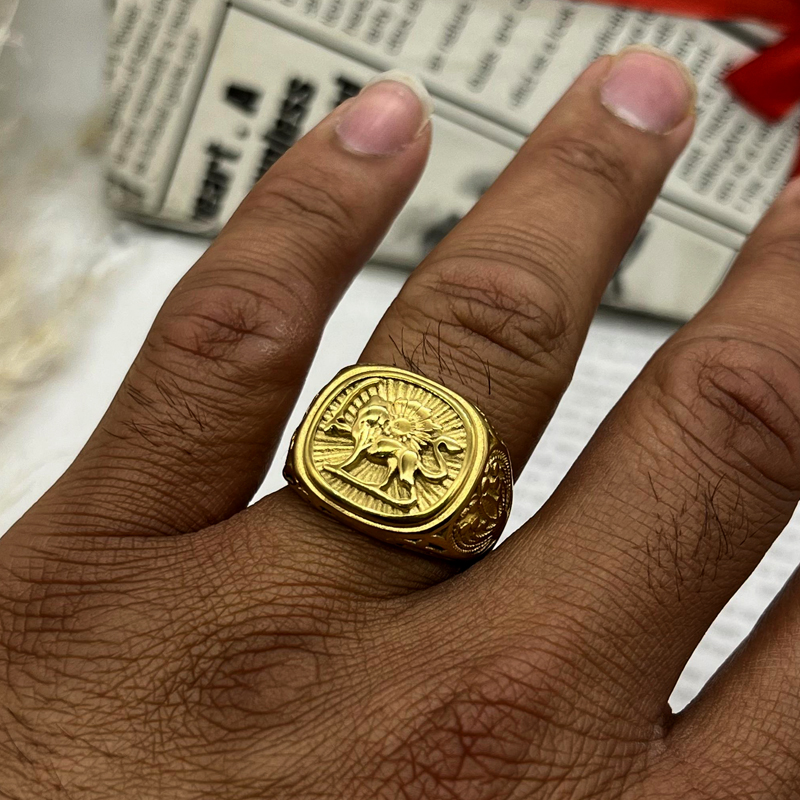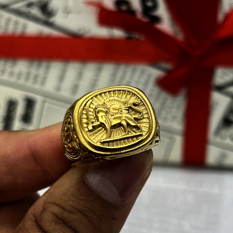 انگشتر ایران باستان کاملا مشابه طلا و فوق العاده شیک که بسیار پر طرفدار و زیباست. این انگشتر شیر و خورشید مردانه ساخته شده از استیل عیار 316L با بالاترین کیفیت آبکاری رنگ ثابت و ضد حساسیت و دارای سایزبندی 9 10 11 12 موجود و قابل سفارش میباشد. اگر دنبال قیمت و خرید انگشتر شیر و خورشید هستی پیشنهاد میکنم خرید انگشتر ایران باستان رو از دست ندی.