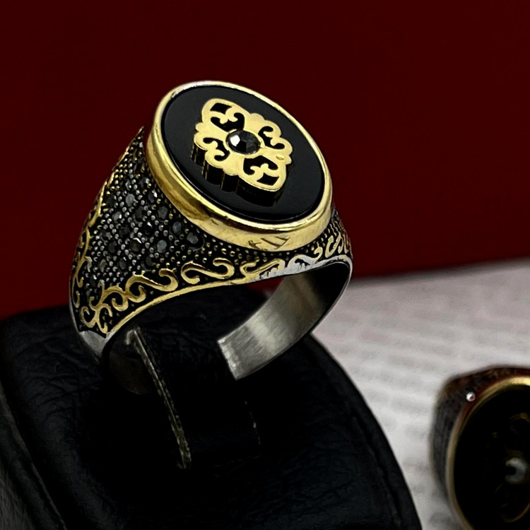 انگشتر عثمانی مردانه بسیار شیک و جذاب و فوق العاده خوش دست با ترکیب رنگ طلایی و استیل و نگین مشکی که زیبایی و درخشندگی این انگشتر طرح عثمانی دو چندان نموده است. این انگشتر عثمانی استیل مردانه ساخته شده از استیل عیار 316L با بالاترین کیفیت آبکاری رنگ ثابت و ضد حساسیت و دارای سایزبندی 8 9 10 11 12 موجود و قابل سفارش میباشد.نگین به کار رفته در این انگشتر نگین مشکی مردانه از جنس سنگ اونیکس میباشد. اگر دنبال قیمت و خرید انگشتر عثمانی مردانه هستی، پیشنهاد میکنم خرید انگشتر طرح عثمانی استیل رو از دست ندی.