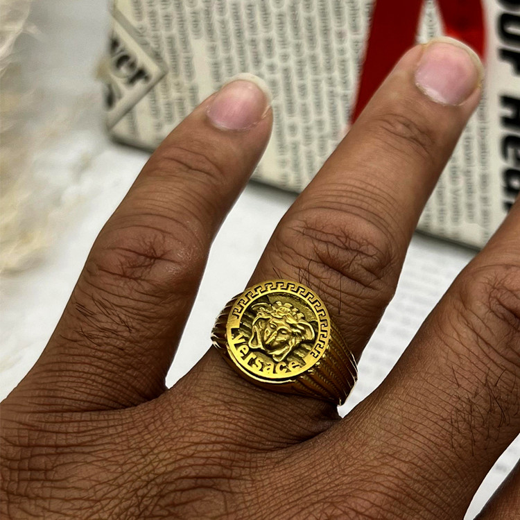 انگشتر ورساچه طرح طلا مردانه بسیار شیک و جذاب با ظاهری اسپورت و مدرن که نوشته versace رو رکاب انگشتر زیبایی و خاص بودن آن را دو چندان نموده است. این انگشتر ورساچه اصل ساخته شده از استیل عیار 316L با بالاترین کیفیت آبکاری رنگ ثابت و ضد حساسیت میباشد.این انگشتر ورساچه مردانه استیل در سایزبندی 8 9 10 11 12 موجود و قابل سفارش میباشد. اگر دنبال قیمت و خرید ورساچه استیل مردانه هستی،پیشنهاد میکنم خرید انگشتر ورساچه مردانه را از دست ندی.