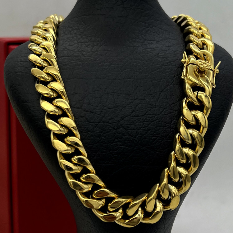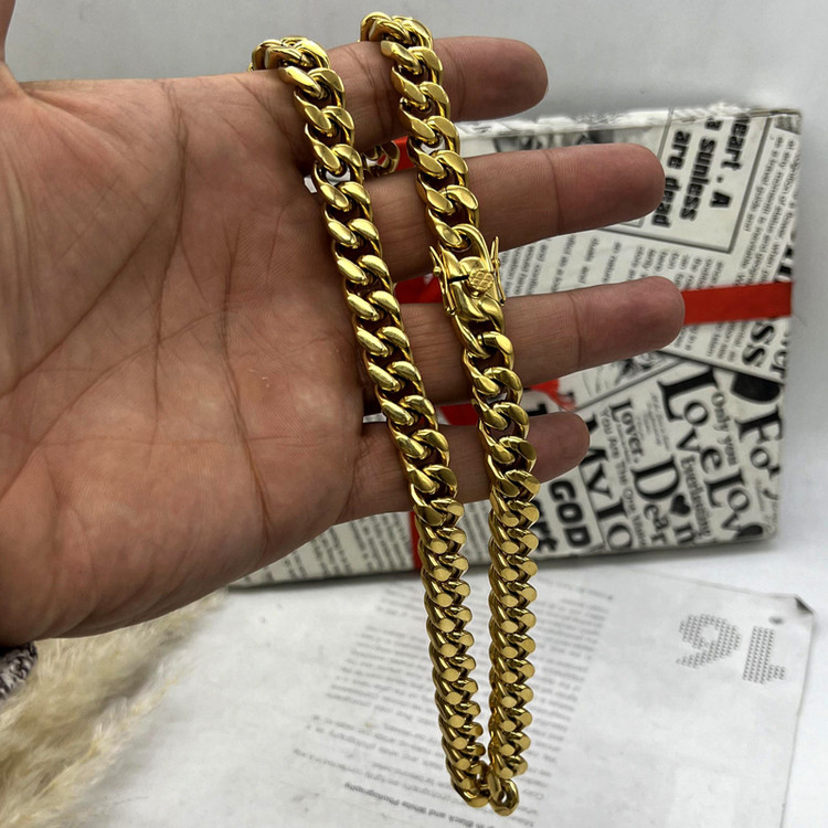 زنجیر کارتیر قفل کوبایی یک دست طلایی و کاملا مشابه طلا با قطر 12 میل یکی از زیباترین زنجیر مردانه میباشد. این زنجیر کارتی مردانه استیل ساخته شده از استیل عیار 316L با بالاترین کیفیت آبکاری رنگ ثابت و ضد حساسیت میباشد.از مشخصات زنجیر کارتیه مردانه قطر آن 12 میل و طول آن 60 سانت که قابل کوتاه شدن میباشد. اگر دنبال قیمت و خرید زنجیر کارتیر(Cartier) هستی، پیشنهاد میکنم خرید زنجیر کارتیه قفل کوبایی رو از دست ندی.