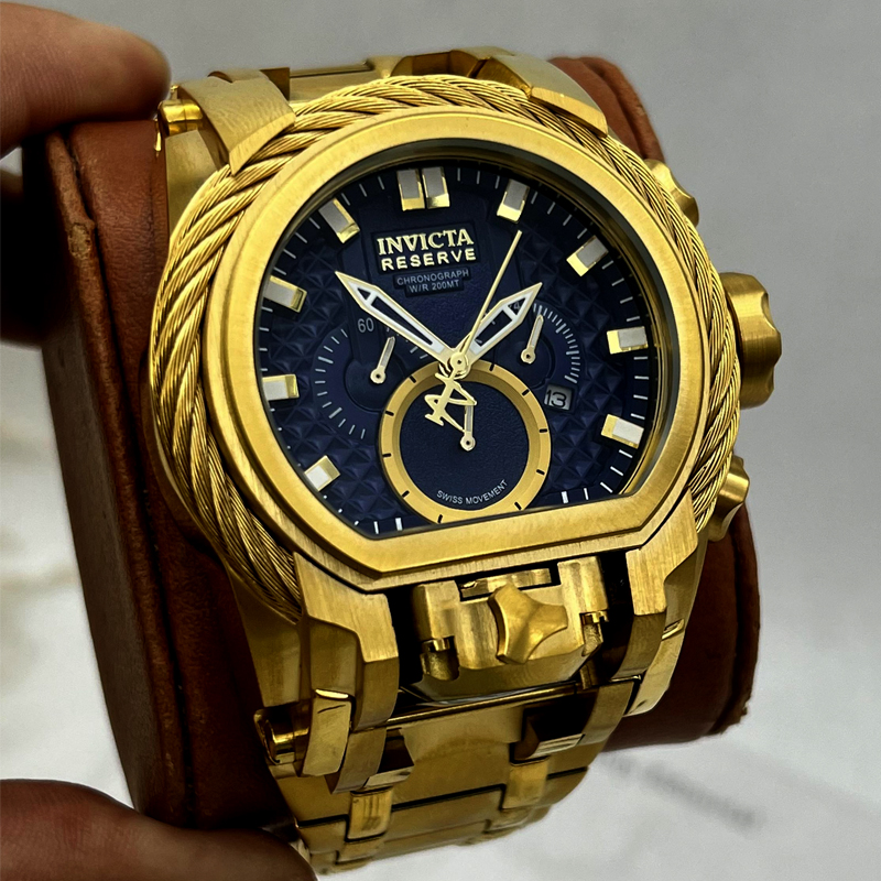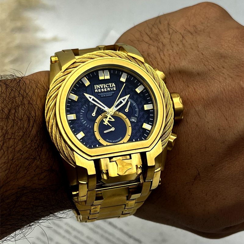 Invicta Bolt Zeus طلایی با صفحه مشکی یک ساعت مچی فوقالعاده برجسته و لوکس از سری محبوب Bolt Zeus برند Invicta است که طراحی بینظیر، ابعاد چشمگیر و کیفیت ساخت استثنایی را با هم ترکیب کرده است. اگر دنبال ساعتی هستید که هم ظاهر لوکس داشته باشد و هم حضور قدرتمند روی دست را تضمین کند، این مدل انتخابی بیرقیب است.