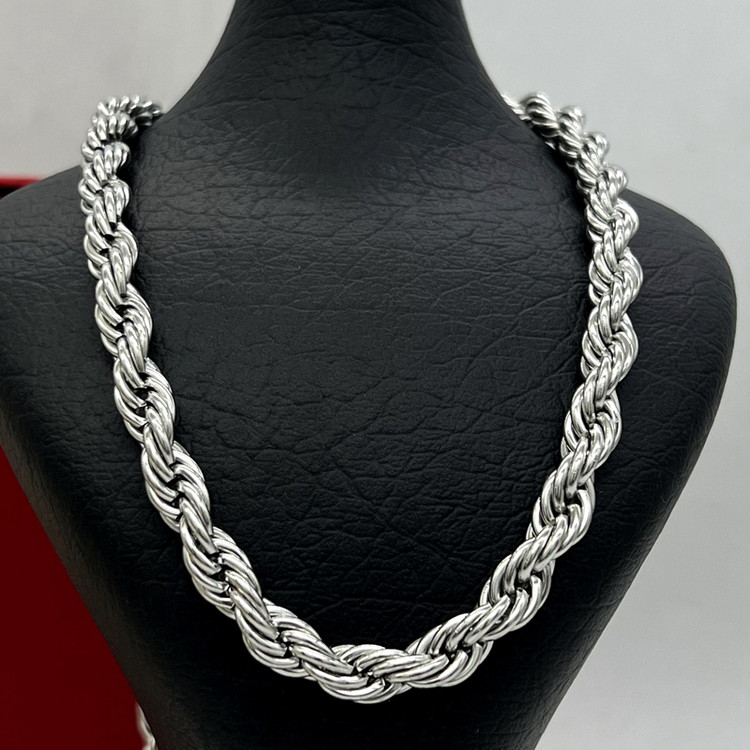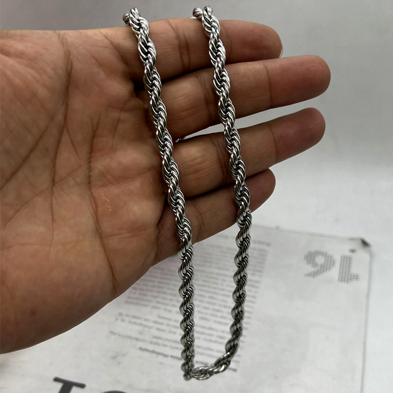 زنجیر طنابی ضخیم مردانه با رنگ یک دست استیل فوق العاده جذاب و زیبا که جز زیباترین زنجیر مردانه میباشد. این گردنبند طنابی استیل ساخته شده از استیل عیار 316L با بالاترین کیفیت آبکاری رنگ ثابت و ضد حساسیت میباشد. از مشخصات زنجیر طنابی اصل طول 60 سانت و قطر 8 میل میباشد. اگر دنبال خرید و قیمت زنجیر طنابی استیل هستی، خرید زنجیر طنابی مردانه ضخیم رو از دست نده.