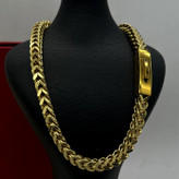 زنجیر مکعبی قفل اصلی یا همان زنجیر کارتیر معکبی بسیار شیک و زیبا با ظاهری کاملا مشابه طلا که جز شیک ترین زنجیر مردانه میباشد. این گردنبند کارتیر مکعبی ساخته شده از استیل عیار 316L با بالاترین کیفیت آبکاری رنگ ثابت و ضد حساسیت و بسیار مشابه طلا میباشد. طول این گردنبند چهار وجهی طلایی 60 سانت و قطر آن 8 میل میباشد.
