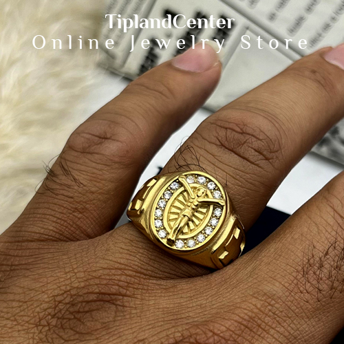 انگشتر صلیب مردانه-مشابه طلا و نگین دار